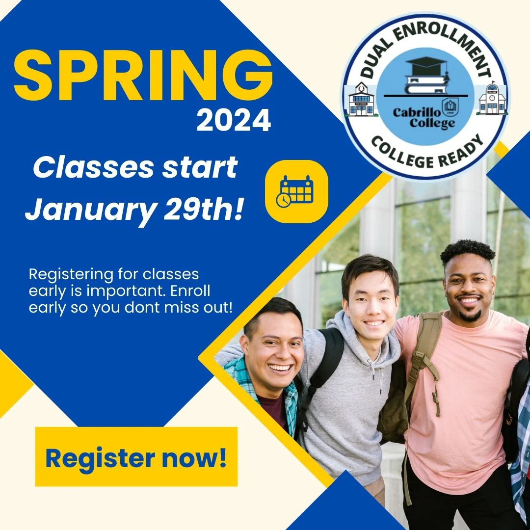 Source : www.cabrillo.eduWhen Is Early Spring 2024 Semester Start The 2024 Spring Semester is starting soon! North Orange : the start of Daylight Saving Time 2024 โ when clocks move ahead one hour โ is getting closer, though winter isnโt done with us yet. Punxatawney Phil may have seen his shadow, predicting an early . Notre Dame has a deep and talented group of early enrollees that have a chance to impact the program right away .